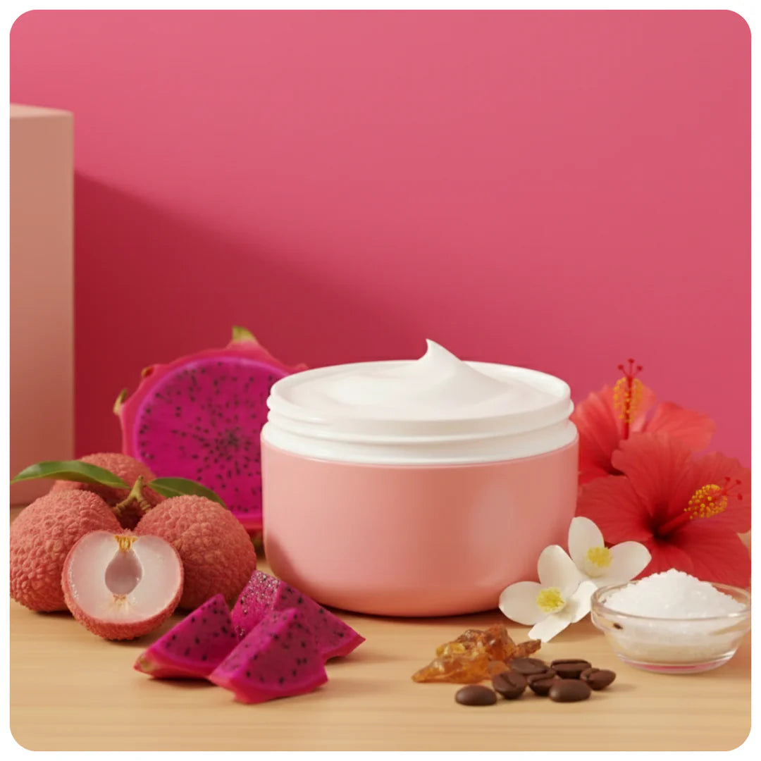 Booty Bounce ~ A sweet oriental fragrance with lychee and pink dragon top notes. The floral heart of jasmine and hibiscus blended with nuances of ocean air are supported with vanilla bean and soft musk.
